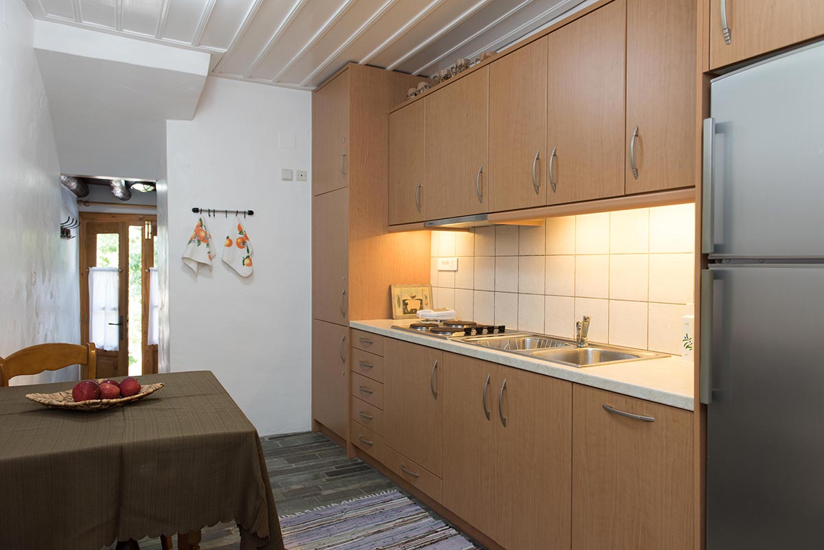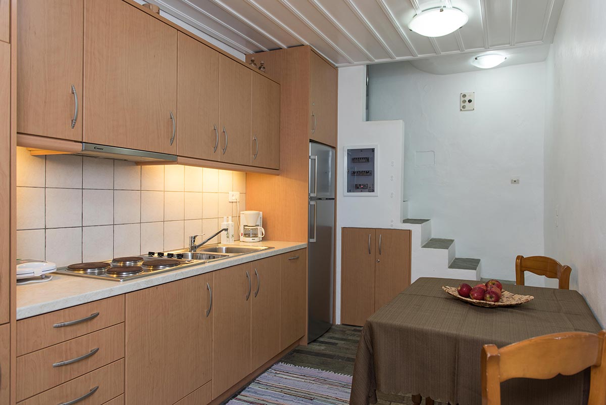 Στον κάτω όροφο υπάρχει μεγάλη κουζίνα, μπάνιο καθώς και μπαλκόνι.