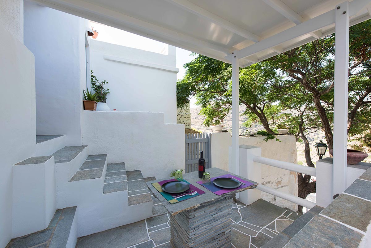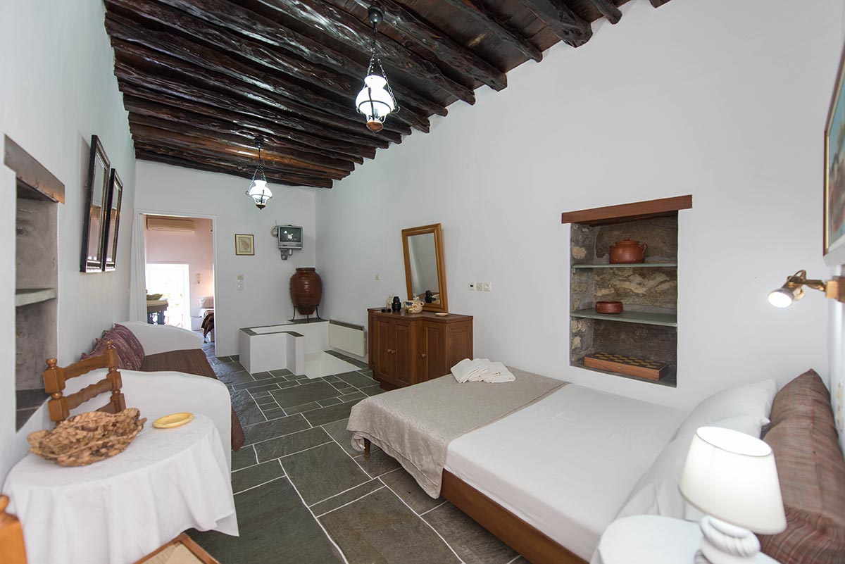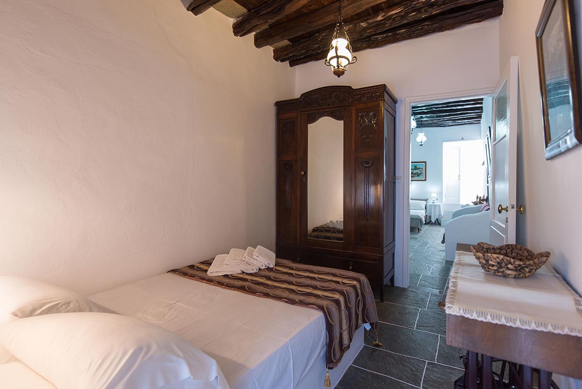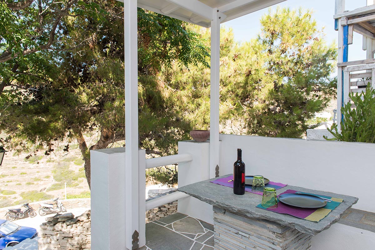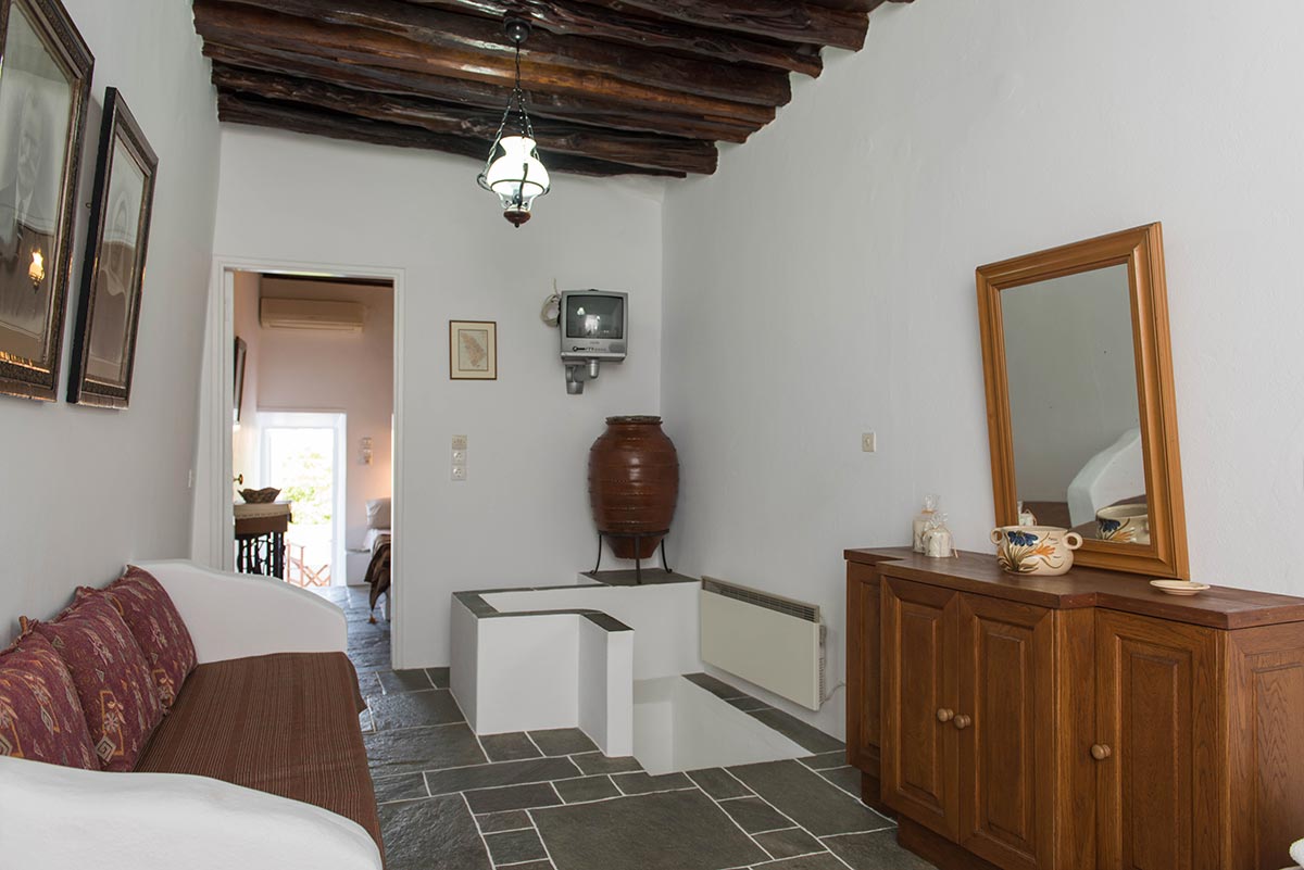 Το διαμέρισμα είναι 62 τ.μ. και είναι διώροφο. Ο πάνω όροφος αποτελείται από 2 υπνοδωμάτια που χωρίζονται με εσωτερική πόρτα. Το ένα εκτός από διπλό κρεβάτι διαθέτει και χτιστό καναπέ-κρεβάτι κρεβατοκάμαρα. Επίσης διαθέτει και μπαλκόνι με θέα στον απέναντι λόφο.